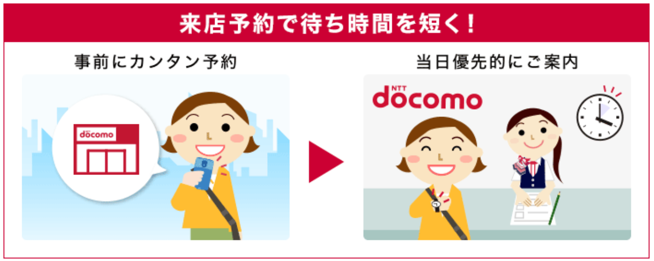 ドコモショップの店舗は【来店予約】をすることで、大幅な時間の節約が期待できます。