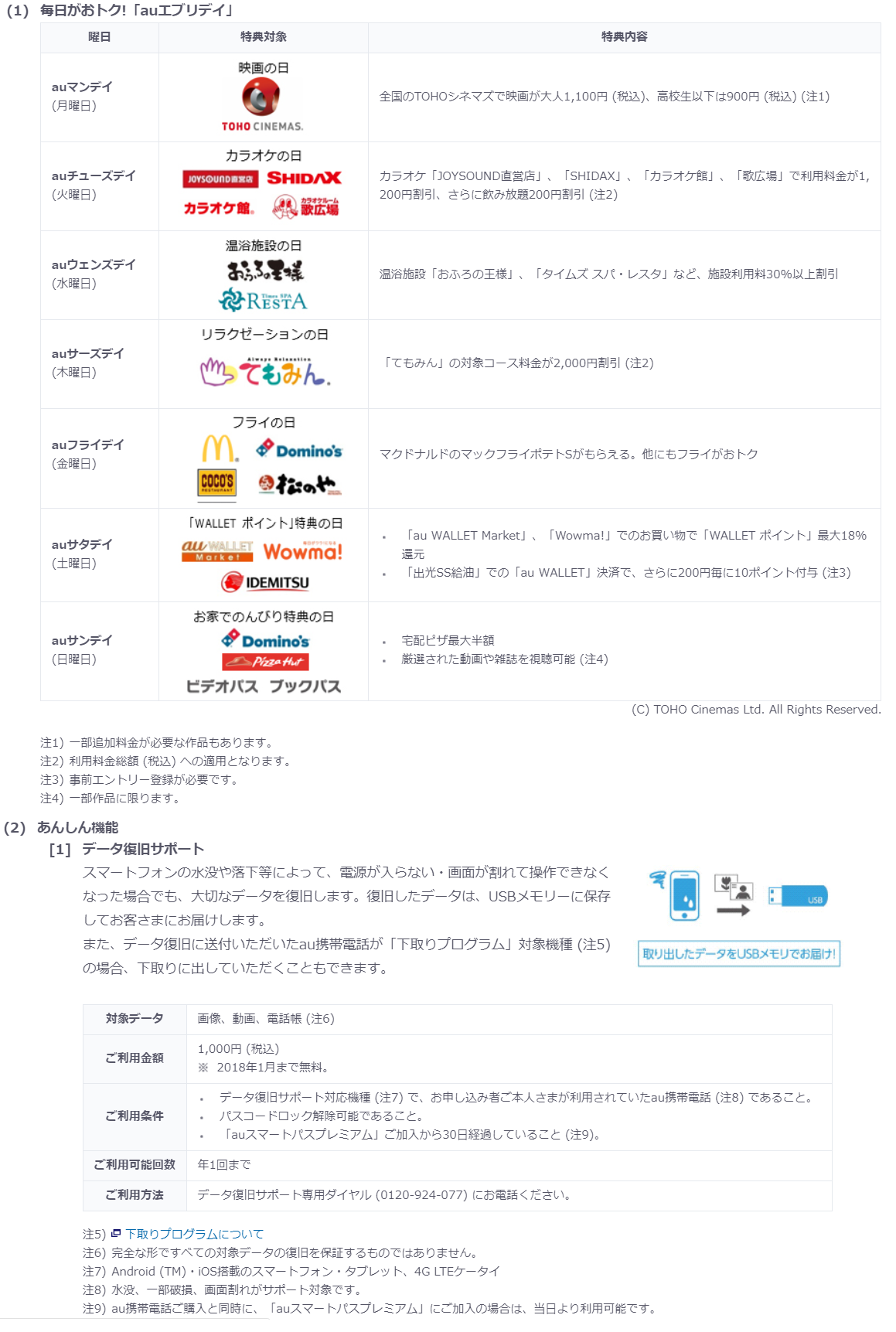「auスマートパスプレミアム 月額499円(税抜)」では、毎日がおトクになる「auエブリデイ」に加えて「データ復旧サービス」も受けられます。